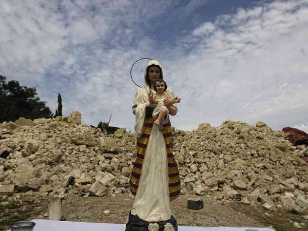 This church is now lying in ruins. An individual died inside the building after it collapsed and two days ago a Mass was given at the ruins.